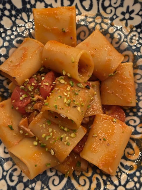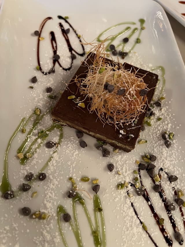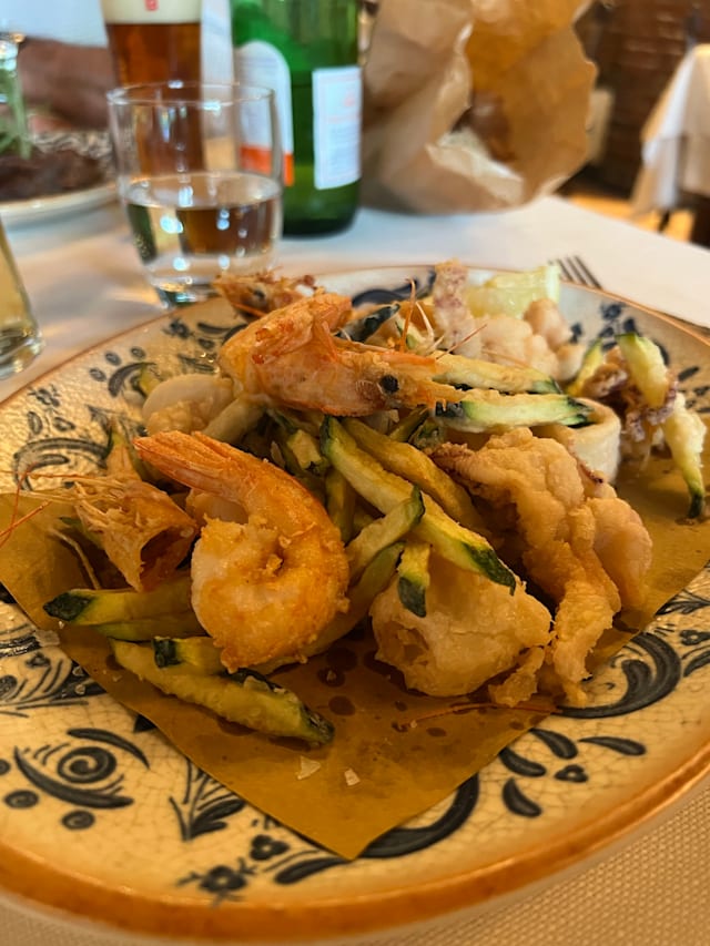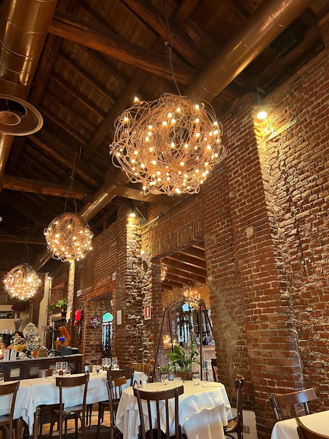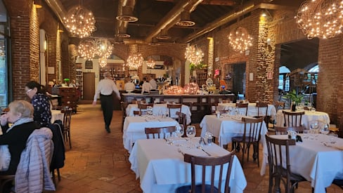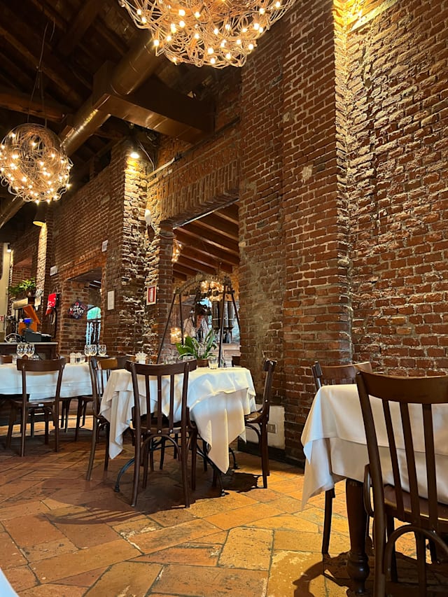 8.5/10Short walk from end of Navigli canal area, more of a destination than a stroll through tourist area. Seated quickly, service was attentive not pushy, atmosphere was open, high ceilings, indoor/outdoor seating options. Seafood appetizers were great, filet/tenderloin was excellent, wine was reasonably priced, tiramisu and flourless chocolate cake were a great finish.