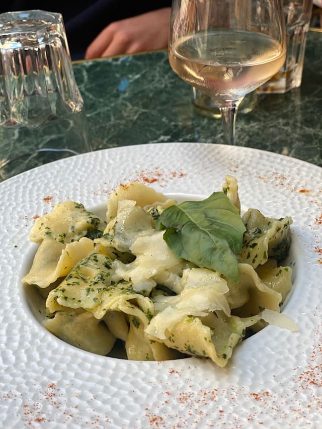 9.5/10As always, the food was amazing -- we had fresh pasta with salmon/carbonara, and our favorite - Parmigiana alla Sicilian (Vegetarian) Grilled eggplant, tomato sauce, mozzarella, grated parmesan, basil. A nice salad is served with the parm dish. And, a 1/2 L of red. Our server was very accommodating and friendly.
