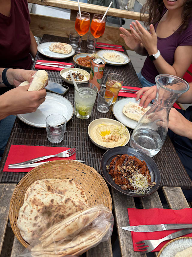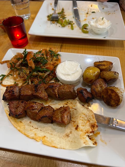 9.5/10Searching for a restaurant near Sacré-Cœur, I came across this little, cosy, authentic Lebanese restaurant with good reviews - and the reviews reflect reality: We enjoyed delicious food in a cosy, no frills environment. The host is a very kind gentleman providing good advice what dishes to choose and how much to order. He advised us (four people) to share a couple of dishes vs each of us ordering their own (which would clearly have been too much to eat). The starters, main courses, and salads were all delicious. The kitchen is open to the restaurant, which I like (see how the food is being prepared etc). The only aspect that could be improved is the ventilation/steam vent above the grill. The restaurant had a noticeable bbq / cooking smell. I didn’t mind but others might…