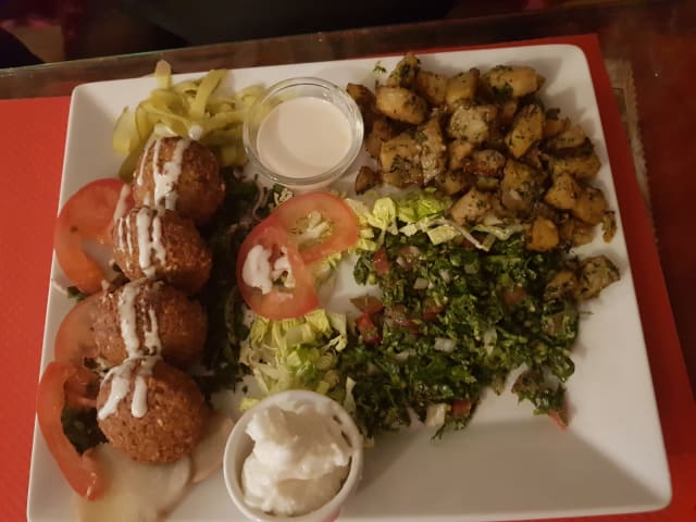 10/10This is a great local spot with delicious chicken shawarma and Lebanese cuisine. Waitress was multilingual and friendly. Not fancy but excellent.