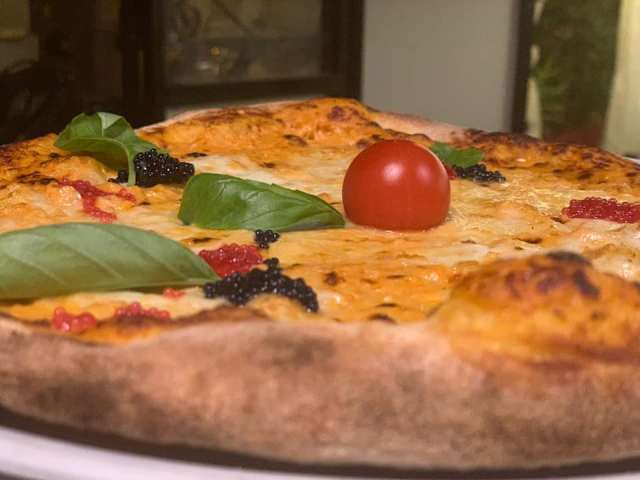 - Gamberi, s. rosa, lattuga, radicchio, caviale