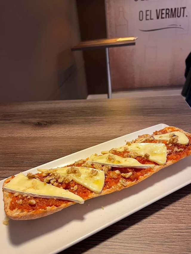 - La pagesa: torrada crujiente con butifarra catalana, cebolla caramelizada y pimientos. Sabor tradicional, dulce y contundente en cada bocado.