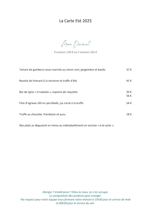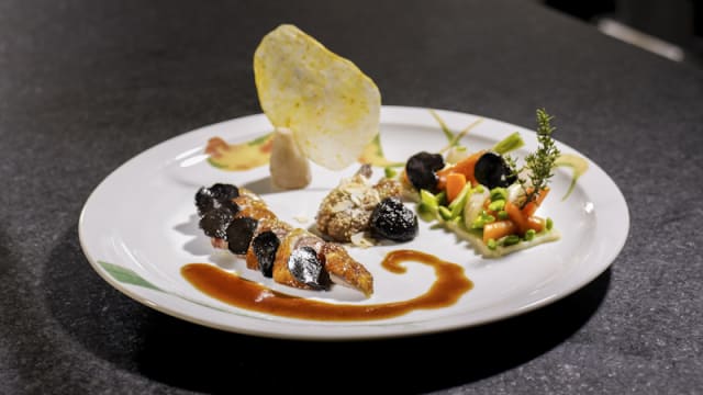 10/10The food was superb; from the three part amusement buche, to a salad with mixed mushrooms, asparagus and truffles, to pigeon with Norcia truffles and a lovely apple frangipane tart. Service is excellent and unobtrusive. The patio is delightful on a summer evening.