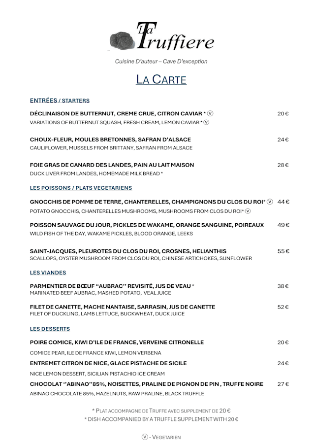 10/10La Truffière in Paris offers an elegant and memorable dining experience. We especially enjoyed the perfectly cooked lamb—tender and flavorful—and the expertly paired wines from their extensive cellar. The highlight was the dessert: a delicately crafted dish featuring Tahitian vanilla ice cream, rich and aromatic, that ended the meal on a perfect note. A refined spot for anyone seeking exceptional French cuisine.