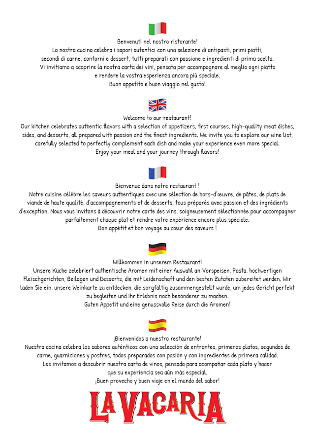 10/10Amazing food with exceptional service! Florentine and the egg pappardine are the must try! Staff is also professional on wine. Absolutely love the experience with La Vacaria!