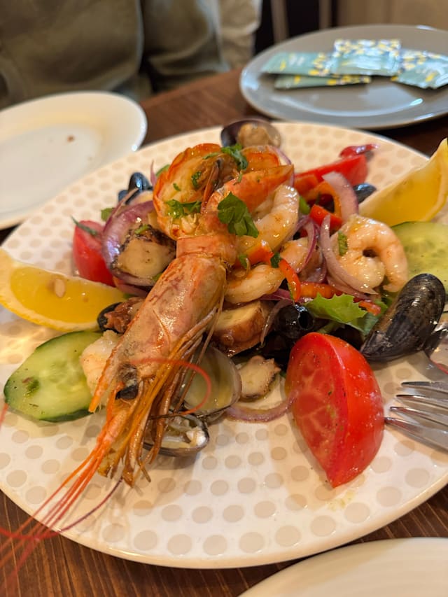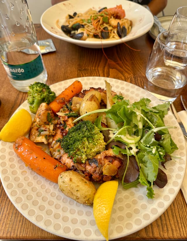 9.5/10A really great spot for some simple, but amazing food! Dishes greatly executed: We had the sea bass, pulpo, the Pasta Vongole as a special and the seafood salad. Everything was really tasty and fresh. The service was great, all of the servers are really nice and are doing their best. Thank you for this experience!
