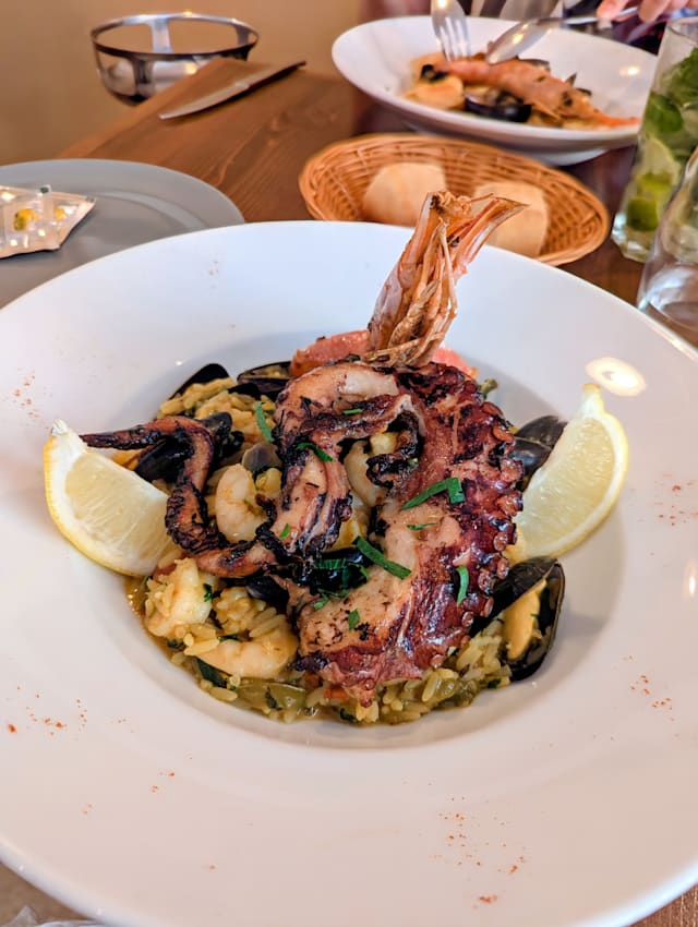 10/10La Vague is a lovely neighborhood Mediterranean restaurant. I ordered seafood Paella and it contained a very generous portion of fresh octopus, shrimp, lobster and mussels in saffron rice. The food was excellent and wait staff were very pleasant. I’m definitely putting this restaurant on my list of Nice favorites.
