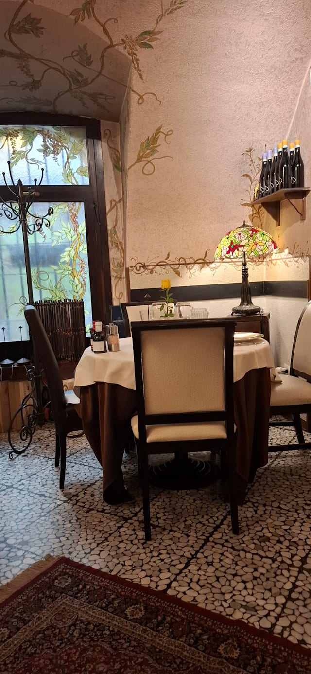 2/10We got recommended this restaurant in Verona with a nice and charming decoration but honestly we will not go back ever again! We have been waiting 25 minutes to get the menu card and a bottle of water and just only after we nicely asked! After 15 minutes we got our starter and then nobody did take care of us for 1h30! Maybe it’s cause this was the second service but staff and kitchen was not capable to take care of 5-7 tables. We decided finally to leave after 2 hours without getting our food! Thanks god we had our wine ! 50 Eur for a bottle of water 2 glasses of wine, bred (10 Eur for the coperto) and a small octopus salad! I recommend to the owner to check out on the staff but more carefully on the waiter running the restaurant! I would definitely not recommend this restaurant Gianluca