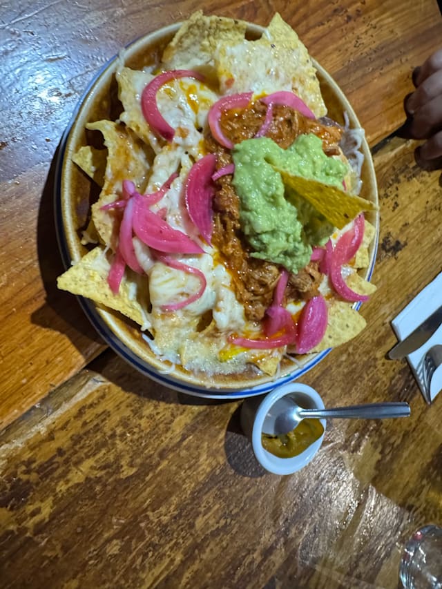 9/10Aztec soup contained chicken, cream, cheese, avocado. Pulled pork tacos came with pickled red onion and rice. Dessert of chocolate cake was crunchier and dryer than a brownie. Tamarind soda makes a great soft drink.