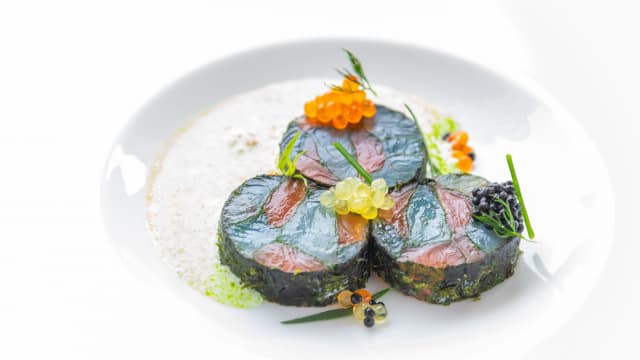 Explore the chef's selection menus with diverse dishes at fixed prices. Some are bookable via TheFork, while others are available onsite.