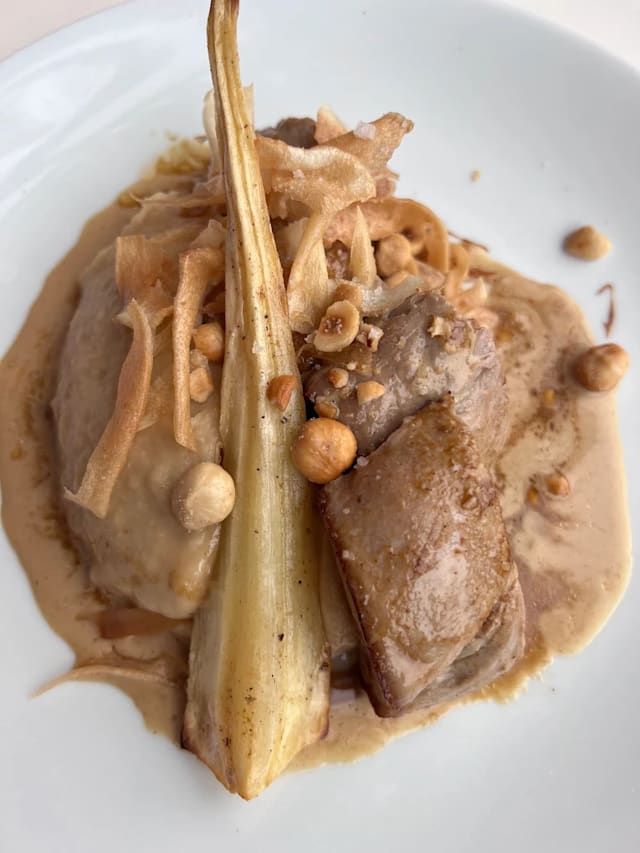 - Mignon de porc, jus de cochon, panais et pralinée noisette