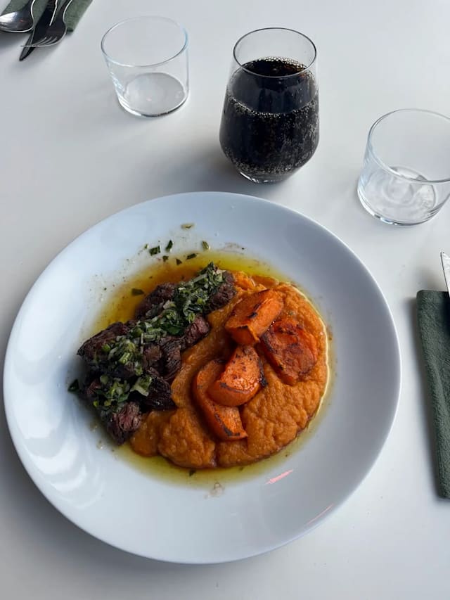 - Bavette de boeuf, salsa verde, patate douce