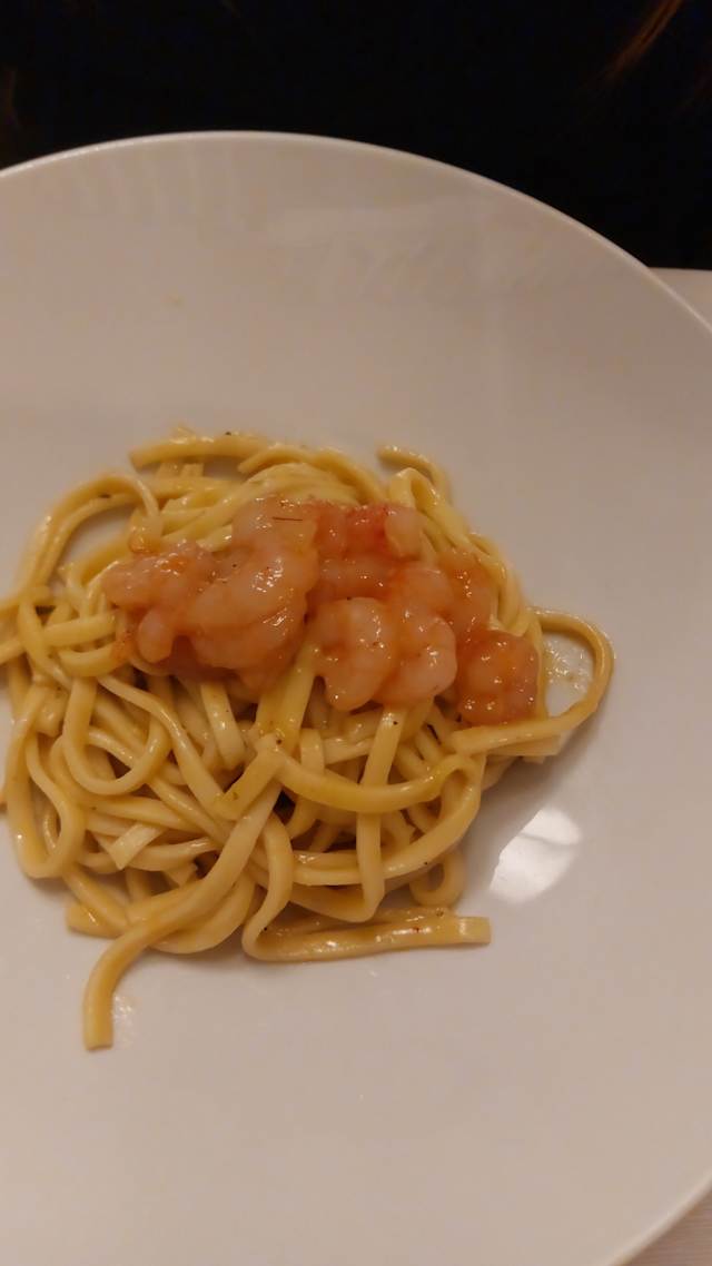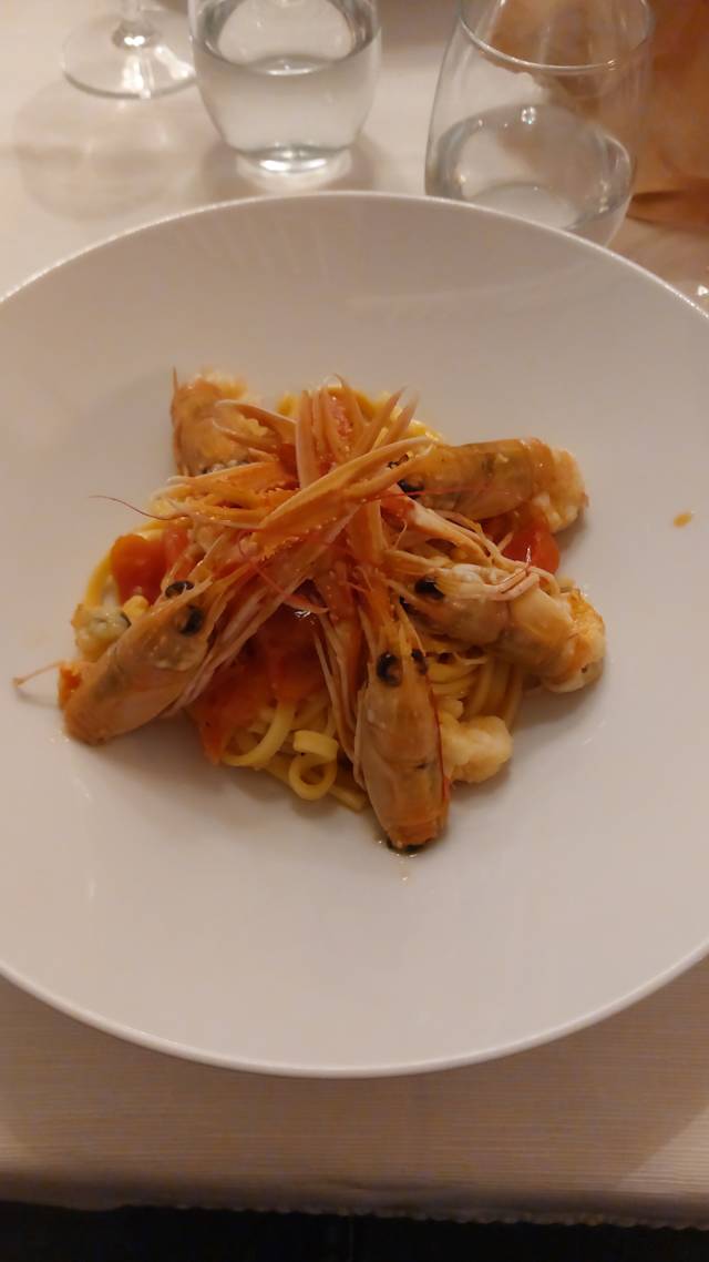- Tagliolini al limone con cruditè di gamberi viola