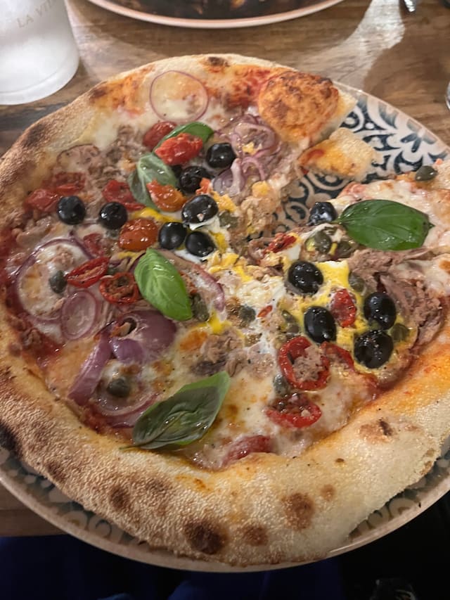 Hello, Thank you so much for your kind words! We’re thrilled to hear that you enjoyed both the pizza and the salad, and that the freshness of the vegetables and the quality of the cheese stood out to you. We’re also glad you appreciated the outdoor seating—it's a great spot to enjoy a meal. Looking forward to welcoming you again soon! The LVEB Team