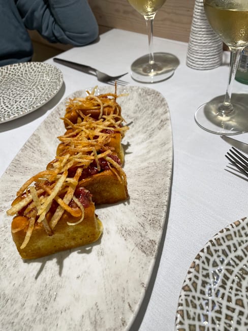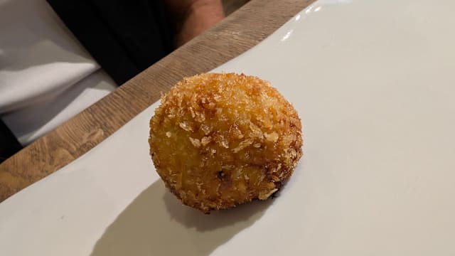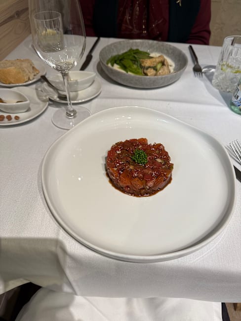 10/10The alcachofa with rock fish was divine which we shared. This was followed by bacalao and tuna tartar which were also exceptional. We enjoyed desserts of the best tiramisu and coulant with pistachio ice cream. I enjoyed a wine by Domine and we ended with cafe con leche. Service was superb and helpful. It was a great lunch.