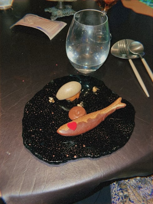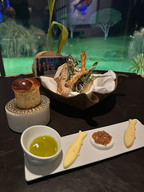 10/10+8Immediately upon entering the restaurant we were greeted warmly and had one surprise after another! First we were handed a glass of sparkling wine, then invited to “pick” a welcome bonbon from an olive tree, and then we were taken upstairs where there is a table with a map of Portugal and we had unique Chef’s tapas from different regions of Portugal. This is all before even being seated for the dinner!