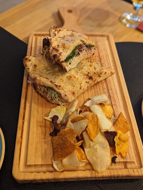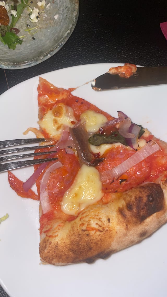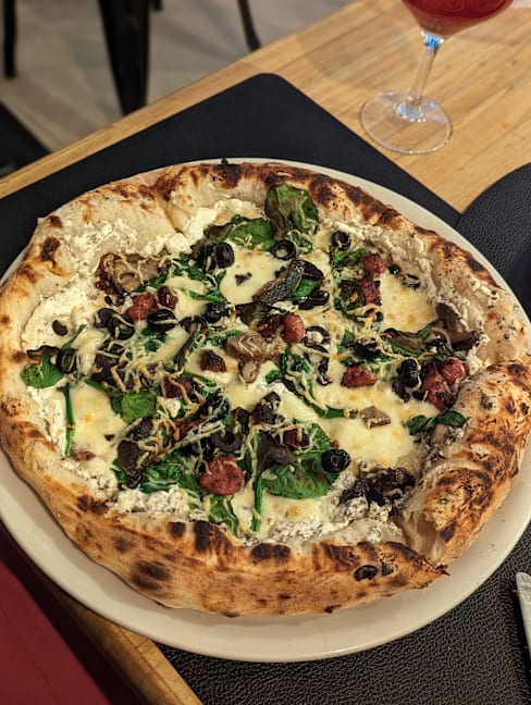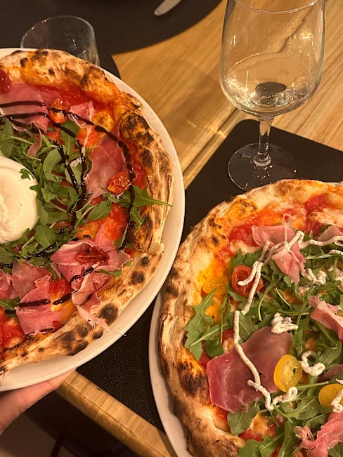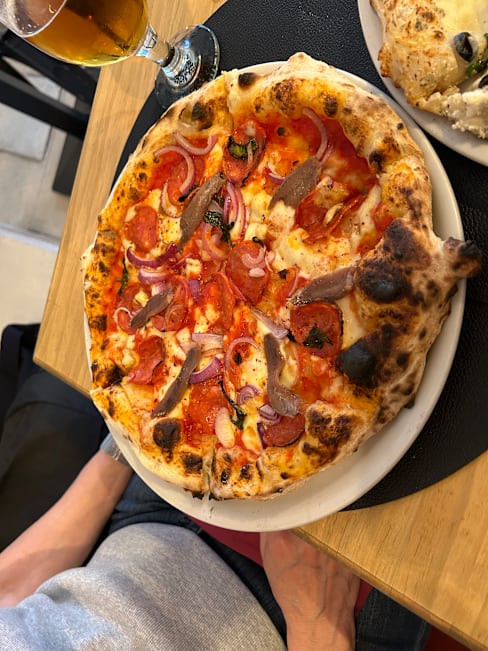6.5/10Asked for tap water but gave me a 3-euro water bottle instead… pizzas were okay but not spectacular, dough was good but ingredients were mid. Place is HOT during summer even with A/C on. I mean it's a cool spot but definitely not the right place for a romantic date or if you are looking to eat GOOD