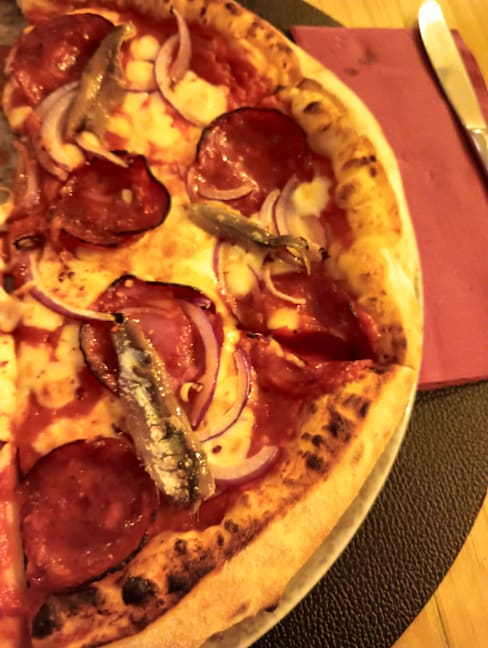 2/10Worse pizza in Madrid, so far, and one of the worse (top 3 worse) in my all life! Pictures are a total scam, pizza is not the one in the pictures of the place you can find online. Totally chewing and undercooked dough!!!! Cheap anchovies (not for sure from cantabrico, as they are selling it) Ask for no salami, sausage instead, and I have got with salami!!!!! I mean... To be the only client as I was even the first ( booked the table at 7) Birra was not even cold! A total disaster for 19.50€ Absolutely not going back Total disappointed and scammed