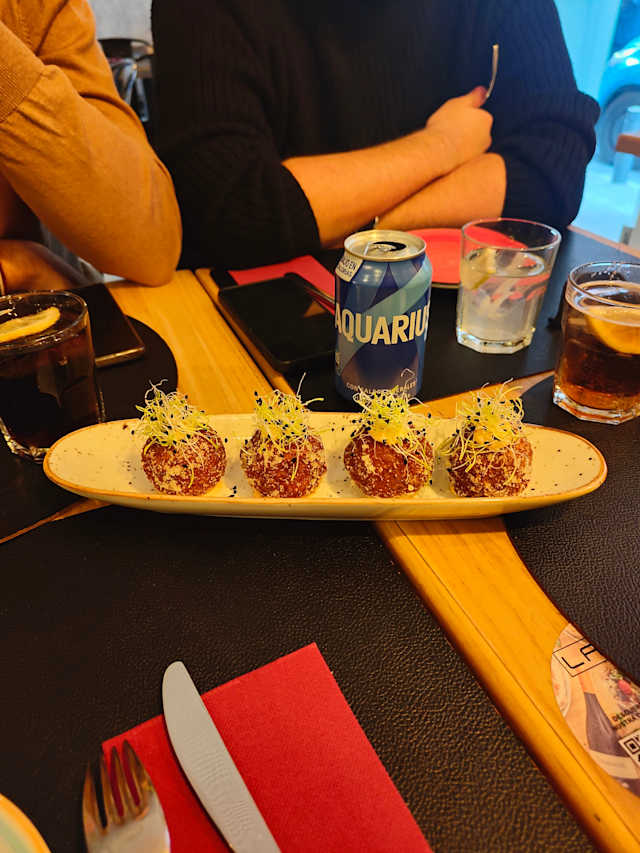 9.5/10This Italian pizza restaurant boasts a quaint location with simple yet cozy décor. The staff is exceptionally friendly and proficient in English, offering valuable menu recommendations. We indulged in the Croquetas de boletus, Lab84 Pizza, Burrata pizza, and Tiramisu de pistacho, all of which were exquisite and served in generous portions. Utilizing The Fork's offer, our bill totaled approximately 41 EUR, inclusive of drinks. It's an ideal spot for Italian fast food, perfect for a quick bite or a leisurely catch-up with friends over drinks. While the seating may be limited and not particularly plush, the quality of food is commendable, and the prices are wallet-friendly.