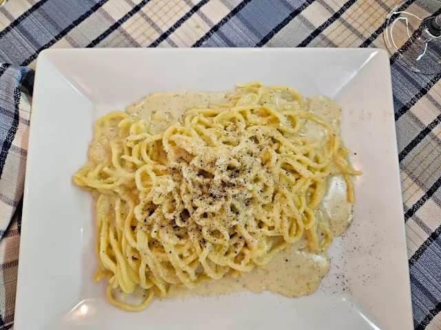 - (Tonnarelli with cherry tomatos and mozzarella)