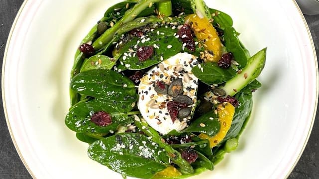- Salade de pousses d'épinards, vinaigrette agrumes