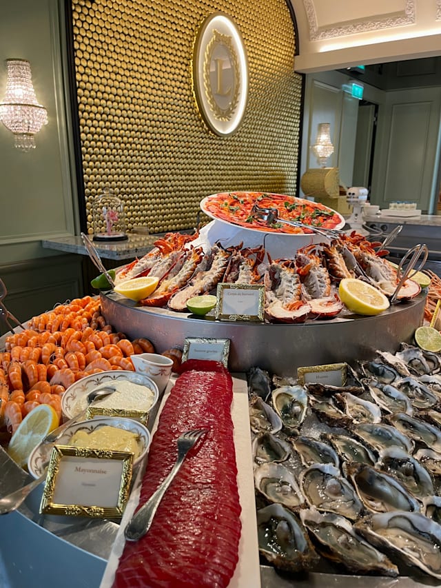 9.5/10We had a wonderful brunch experience last Sunday at Laduree. The food is fresh, well curated, it is abundant with superb and high quality offerings. The presentation and the array of choices is sublime and all delicious. From the shellfish to the beautiful fresh salads, foie gras, charcuterie, cheeses, breads, to the hot plates of freshly baked fish and black angus filet to the wickedly delicious dessert buffet, there is no shortage in delighting any and every palate. We want to thank Salvatore our waiter and his colleague, a lovely gentleman both of whom made our experience amazing. They were prompt in clearing our empty plates, providing fresh cutlery and providing us with little touches that made the service outstanding! Their attention to the details, their professionalism and the care they took made us feel welcome and special. A big thank you to Nicolas who leads a great Team of passionate and dedicated service staff. Merci a tous….a bientot!