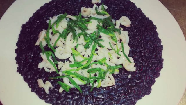 Risotto di pesce seppie al nero e crema di karkade’