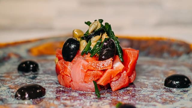 - Tartare di ricciola con stracciatella di bufala e bottarga