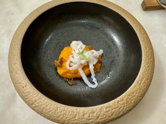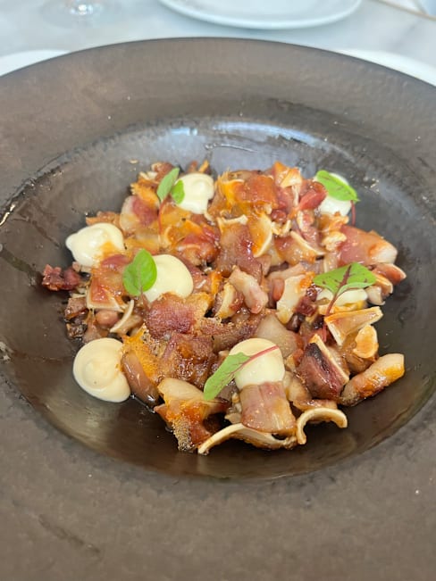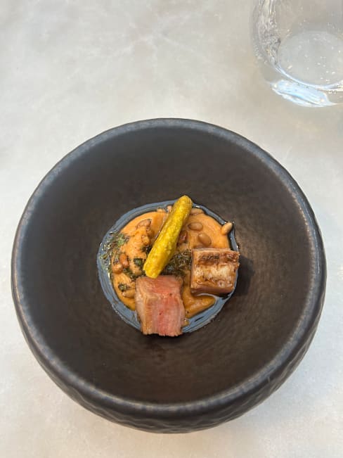 4.5/10Such a disappointment! I hate leaving a negative review but for the sake of other diners I feel I must. We had the tasting menu expecting a little finesse. Unfortunately it was more like leftover scraps put on nice china. The positives- good bread, pleasant waiter, tasty pasta and black pudding course and nice dessert. All served on beautiful china. Negatives- nothing memorable or imaginative. The artichoke with cubes of pork was so bland that it was inedible. The cod was chewy, overcooked and contained pin bones. To top it off, we were short changed. The overflowing bin in the ladies’ room was a gruesome sight which didn’t help either. The Michelin inspectors should come here incognito and see for themselves.