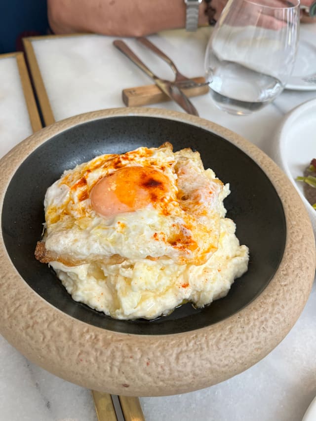 4.5/10Feels like you are dining in the screened off lobby area of a hotel - which indeed I think you are. So not great ambiance wise. Service was attentive and they did meet our request to allow to leave in time for our show. The steak by weight was huge (which we weren’t told - and hence cost a fortune) and my daughter hadn’t really envisaged a massive slab of unadorned meat. No sauce, no garnish just a side bowl of weird soggy chips. Not great. Fish of the day was nice. My red tuna was tiny and totally blackened and served with flame grilled cauliflower. Ugh. Not a great combo I’m afraid. Bread was nice - had to ask for olive oil which was poured out first us - a small spoonful. Perhaps we were lowbrow for having to ask for it but other restaurants just bring it straight out.