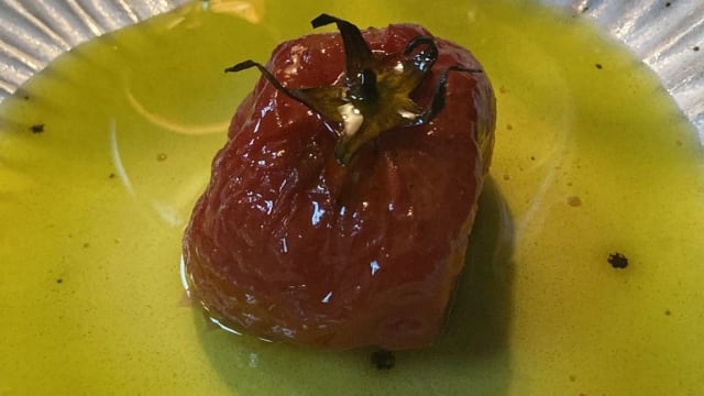 Burrata De Puglia Sobre Base De Tomate, Albahaca Crujiente Y Trufa De Invierno