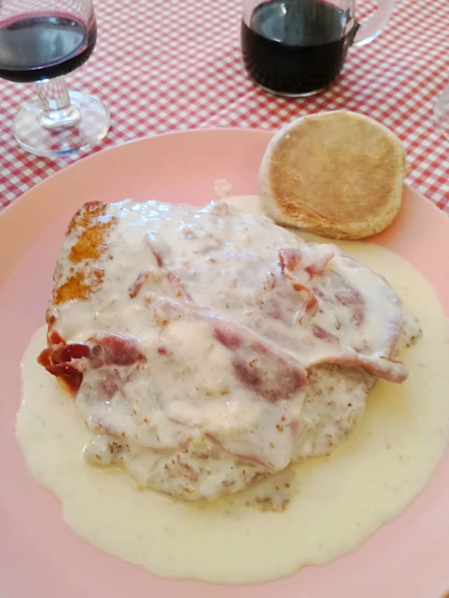 Cotoletta alla bolognese con contorno di purè o patate chips