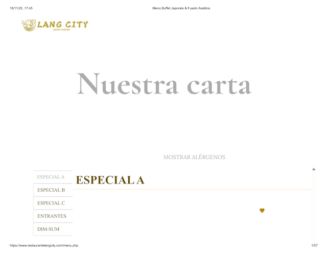 En Lang City queremos agradar a nuestros clientes, ofreciendo la más y mejor valorada cocina del planeta: la Comida japonesa. Nuestro éxito reside en la excelente combinación de sabores y texturas: verduras, especies, pescados, mariscos, carnes básicas, arroz, elaborados sin abandonar nuestras tradi...