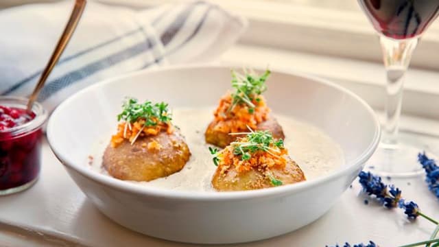Köttbullar Med Potatispuré, Pressgurka, Lingon Och Gräddsås