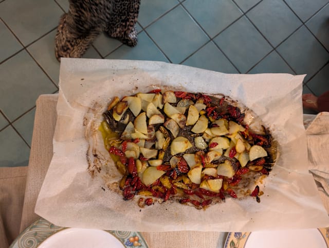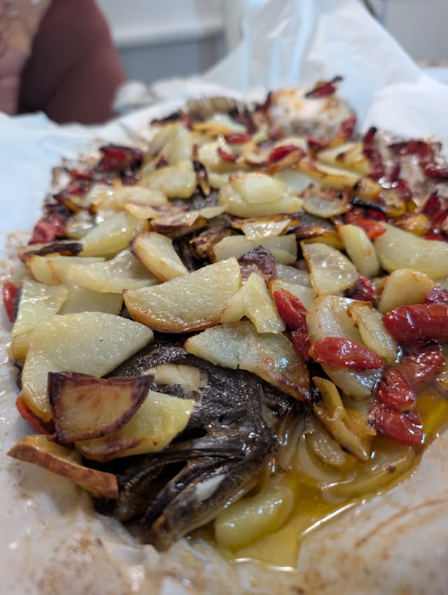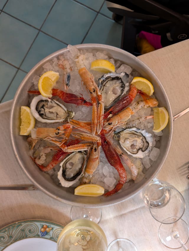 Involtino di melanzane e dentice reale alla parmigiana insalata di mare con seppie e calamari catalana di mazzancolle dalla coda blu caprese di mare con bufala pontina ed alici di cetare involtino di pesce spada con caponata di verdure alla siciliana