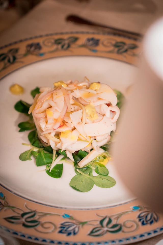 Calamaretto croccante con zucchine alla scapece e scaglie di provolone