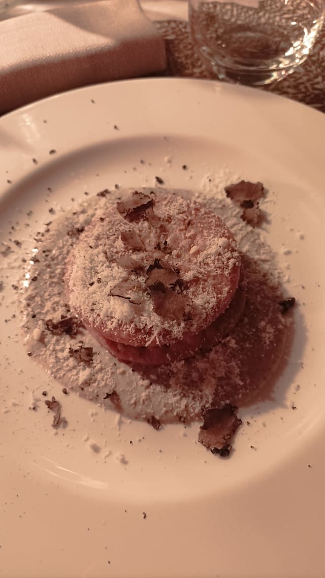 5.5/10Taste was good. Pasta portion good. Meat/secondo portions small. Pork overcooked and dry. Floor dirty. Lack of parking close to restaurant.