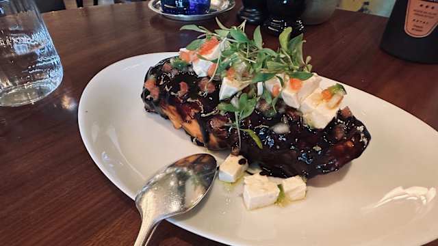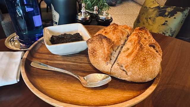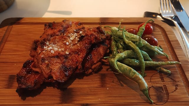 10/10The restaurant is inside a hotel. There wasn’t anyone at the restaurant entrance when I arrived, but a waitress soon accommodated me. The main section of the restaurant was full, but that meant that I could have my meal in some plush seating with throw cushions. The portion sizes were larger than I am used to in the UK; the bread was the same size that I imagine Jesus fed the multitudes, accompanied by an olive paste instead of oil or butter. The food was prepared very quickly. I had a starter of slices of jamón ibérico with pan con tomate, lovely fresh tomato and tasty ham, delivered on two plates when one would do. I started a main course of lamb chops and peppers but couldn’t finish it all, not due to lack of quality but due to the generous quantity of the portions.