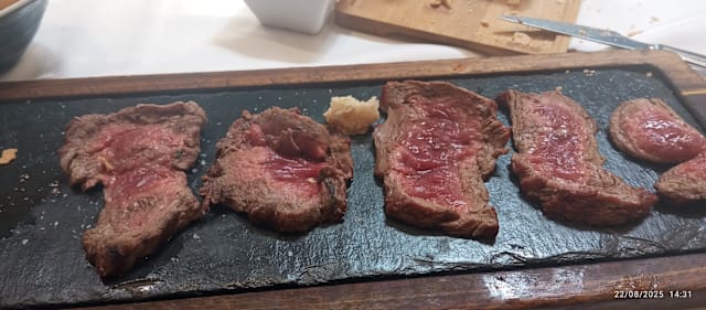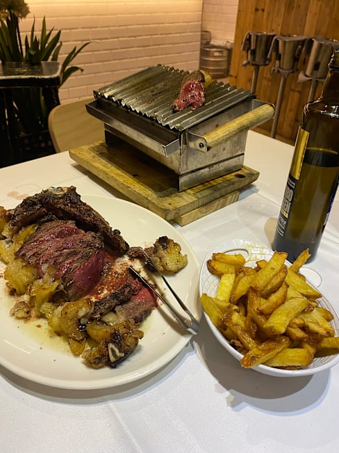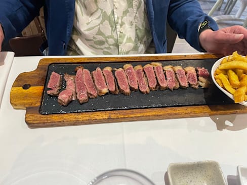 2/10Firstly there was no Wagyu steak available, which for a steak restaurant is totally unacceptable!! We consequently ordered the Cote de Boeuf for 5 people. It arrived at the table with one small hot plate to cook our own!! Very difficult for 5 people.Also the fries were meagre and cold !! Also we requested mustard 4 TIMES !! Eventually arrived at the end of the meal!! Not sure how it’s got such a high rating. Very Very disappointing!! Have eaten in many restaurants in Alicante which are hugely better!