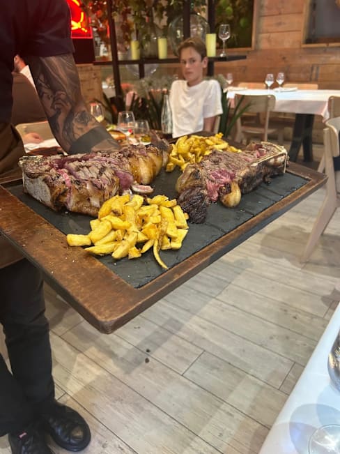 2/10No napkins on the table had to wait over 10mins for menu and nearly 10mins for to be ask for a drink order. final order was taken for the meal the meat was ribeye it came out just fat for the price of in weight with a small bowl of fried potato's by the time they got the fire to cook the meat are potatoes where finish had to ask for more very poor service all around is it because we are not Spanish never got the bread that was order and never got a chance to order wine with our meal poor all round and by the way had to ask for a napkins after are dinner poor
