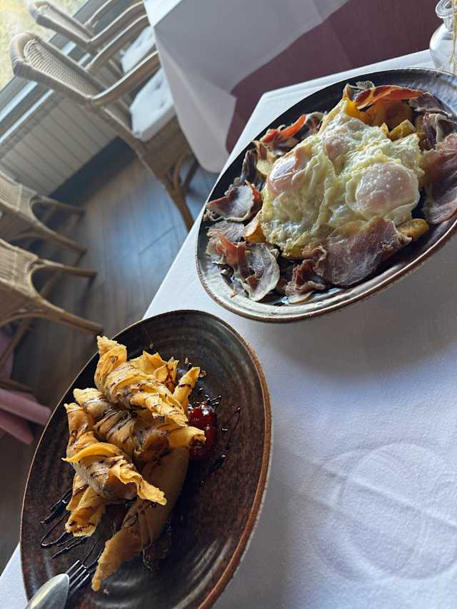 - Huevos Estelados de Corral Sobre Patata Panadera con Jamón