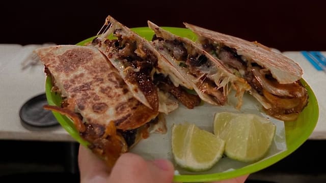 Tortillas de harina de trigo con carne al pastor y queso fundido