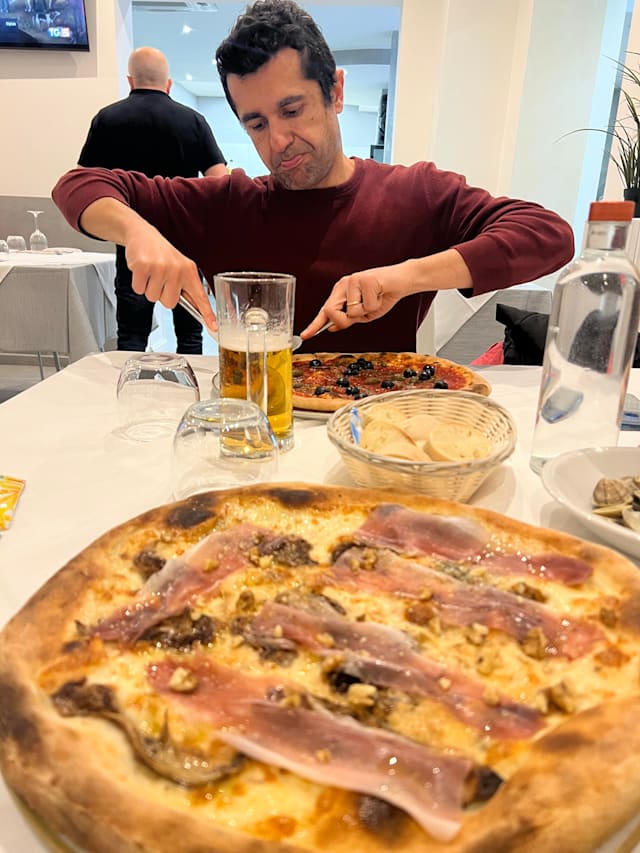 - (mozzarella, salsiccia, cipolla, nduja, basilico)