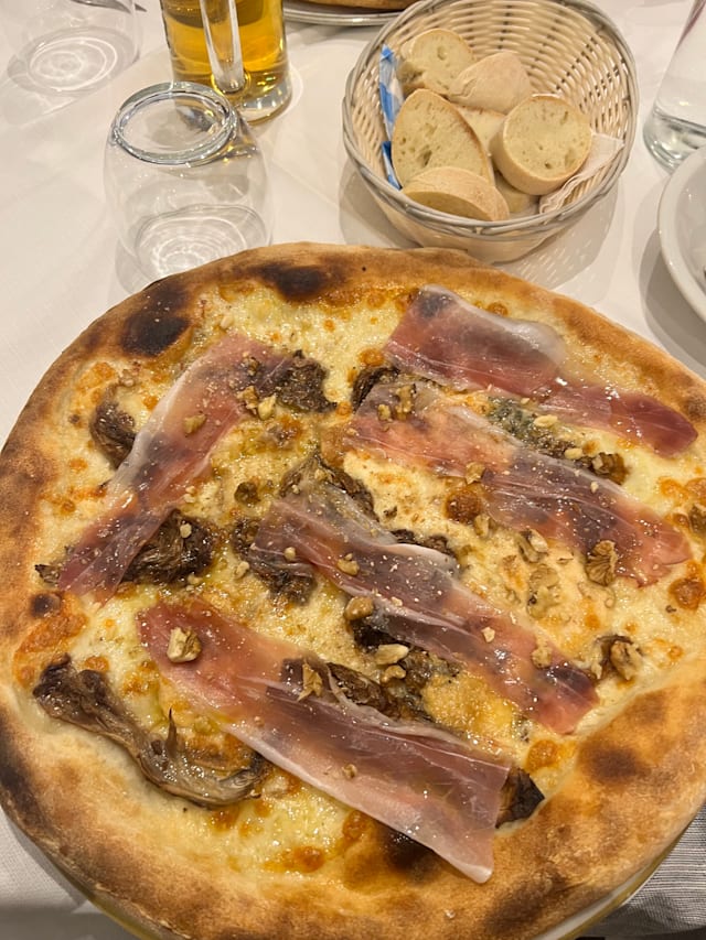 - (mozzarella fior di latte, provola, radicchio grigliato, noci, speck).