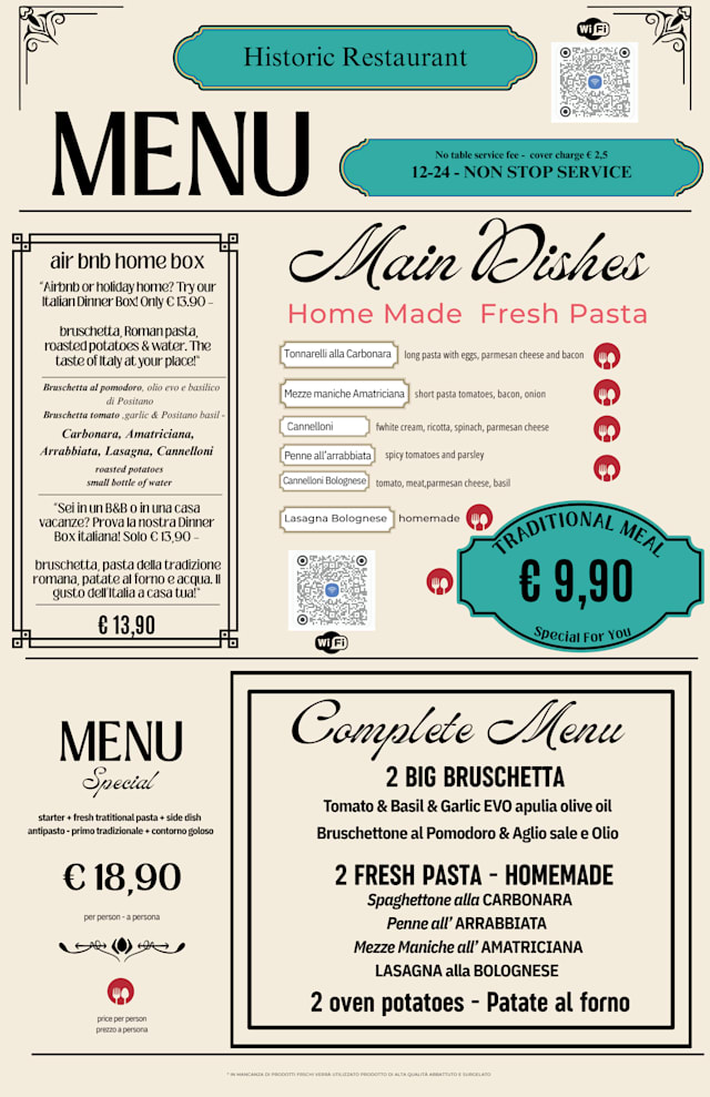ItalianMeat CuisinePizzeriaSeafoodTraditional cuisineEuropeanGood for a business lunchGood for familiesLunchOutdoor diningTraditionalWith friendsVegetarian dishesAmerican ExpressDog-FriendlyWheelchair AccessibleWifi