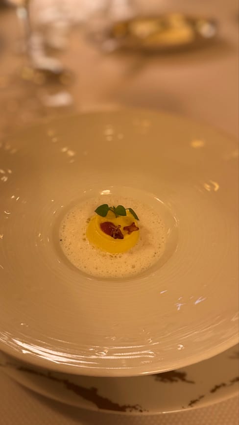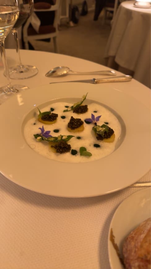 10/10+6The personnel are exquisite. We were greeted warmly and chose to go for the degustation menu which includes 4 plates at the chef’s choice among the ones in the menu and two desserts. We don’t eat meat but fish and we ate 4 fantastic dishes: the ‘perfect egg with mushrooms, the ‘noix de St. Jacques (great scallops), potato raviolis with grated black truffle and the lobster in its bisque. The girl sommelier gave us perfect suggestions and was really friendly. The sweet dessert were nice even though we didn’t have the Crepe Suzette maybe reserved to the signature menu. The quality of the dishes, of the mousses, of the sauces was truly France at its best and the 1 star is not only well deserved but also a second star would match the quality of the experience. Even if it was December the opening roof was a very scenic addition to a great dinner.