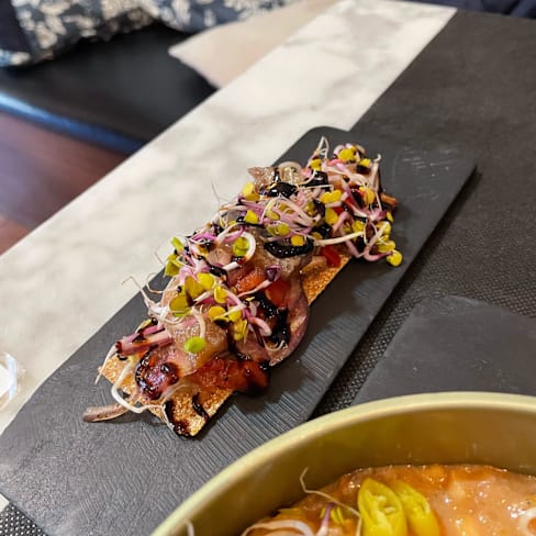 9.5/10So much better than we expected for a tapas place. Each dish was outstanding and unlike anything I have had before. The cannoli with candied duck was sublime. The lobster ‘bite’ was perfect start to the rest of the wonderful little plates. The chef came out and talked with us about each of his creations. This is little hard to find, tucked away on a small side street, but well worth any effort the find it.