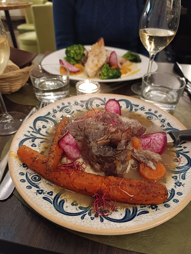 7/10The serveuse was friendly to start but she could not name the fish for the main course, she said white Atlantic fish. Starter was Gambas tartin, the whole prawns with heads tails etc were just placed on a tart. Not what we expected. Main was a beef cut with celeriac mash and great sauce. Meat was cooked perfectly and sauce and accompaniment were good too. Strangely the waitress was lost her amiable qualities by the end. And was a bit sharp. Personally we wouldn't return