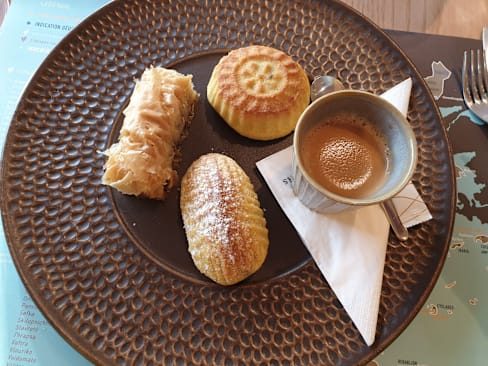 10/10Excelente option for Greek food. Very careful preparation of the dishes, great combination of fresh ingredients. Nice view of Champs-Elisee. Service is also very friendly and helpful.