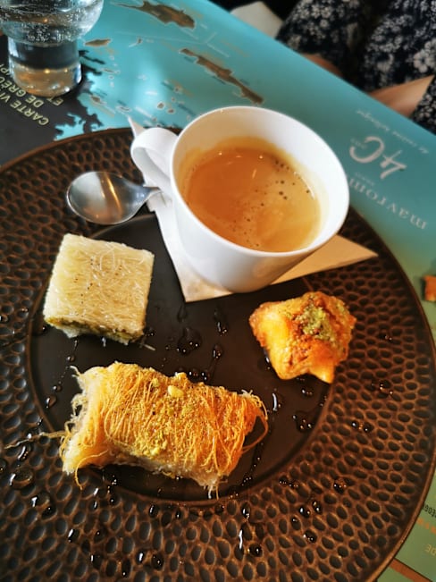 10/10Beautiful, cosy and quiet oasis right in the heart of bustling Galeries Lafayette on Champs-Élysées. Menu is large and varied. I ordered the amazing Mezedes: Semi-cooked tuna accompanied with houmous, leek and onion spanakokeftédès, which was ideal for the summer dinner. Olives were a wonderful amuse-bouche and pita bread with a very pleasant texture was so delicious. La Carte des Vins offers a nice range; with a lot of options to try local wine produced in different parts of Greece. I chose the glass of Assyrtiko wine from Santorini. I also really liked the possibility to choose and try different Greek pastries on your choice from the vitrine. In conclusion, the service was very friendly and attentive; quality of products is high and the most important for Paris that the prices are affordable. I definitely recommend this place; Laurier is really worth visiting.
